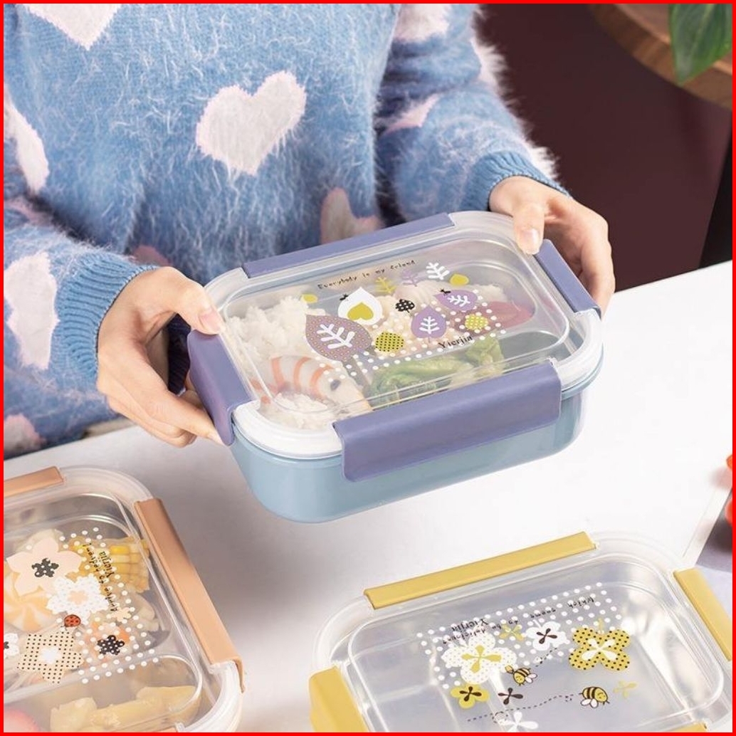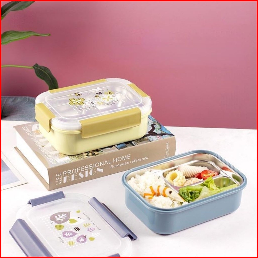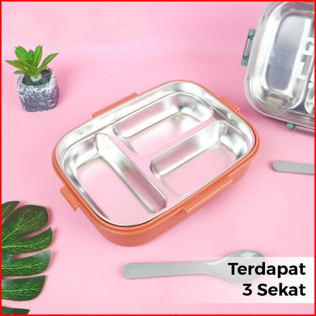 Lunch Box Kotak Makan Anak Set Stainless 304 Sekat 3 Anti Tumpah Sendok Kotak Bekal