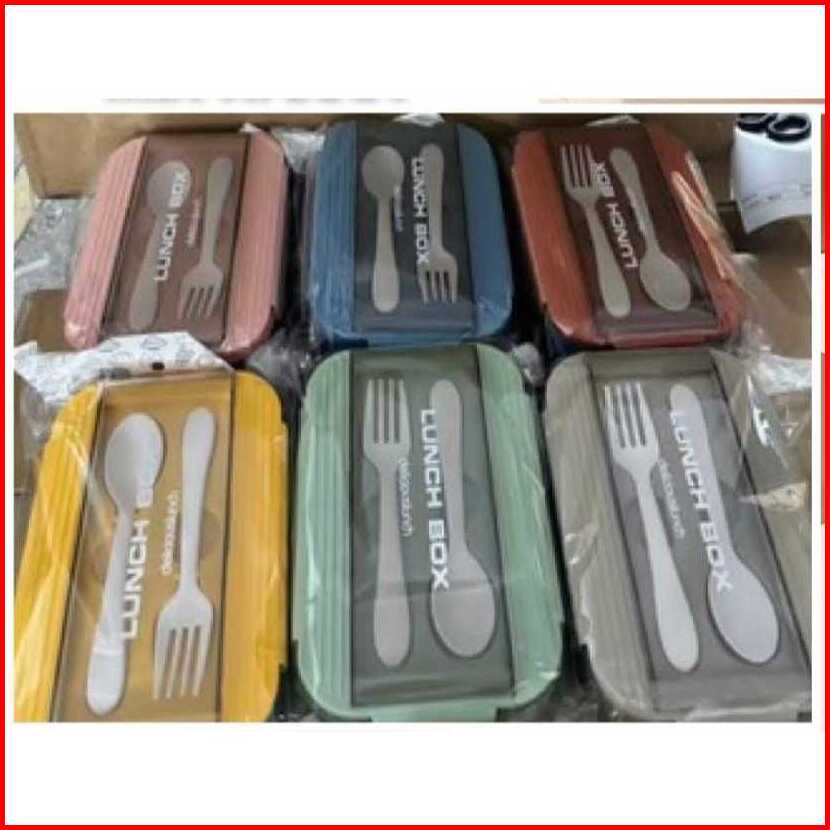 Lunch Box Tempat Makan 3 Sekat Anti Tumpah Dan Bocor Kapasitas 1100mlm Sudah Free Sendok Garpu Aman Bpa Free Kode 6539