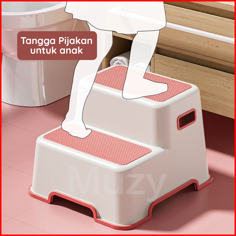 Muzy Tangga Pijakan Anak Multi Fungsi Bangku Kamar Mandi Anti Slip Tangga Mini Double Layer Footstool Step Plastik Hsb86