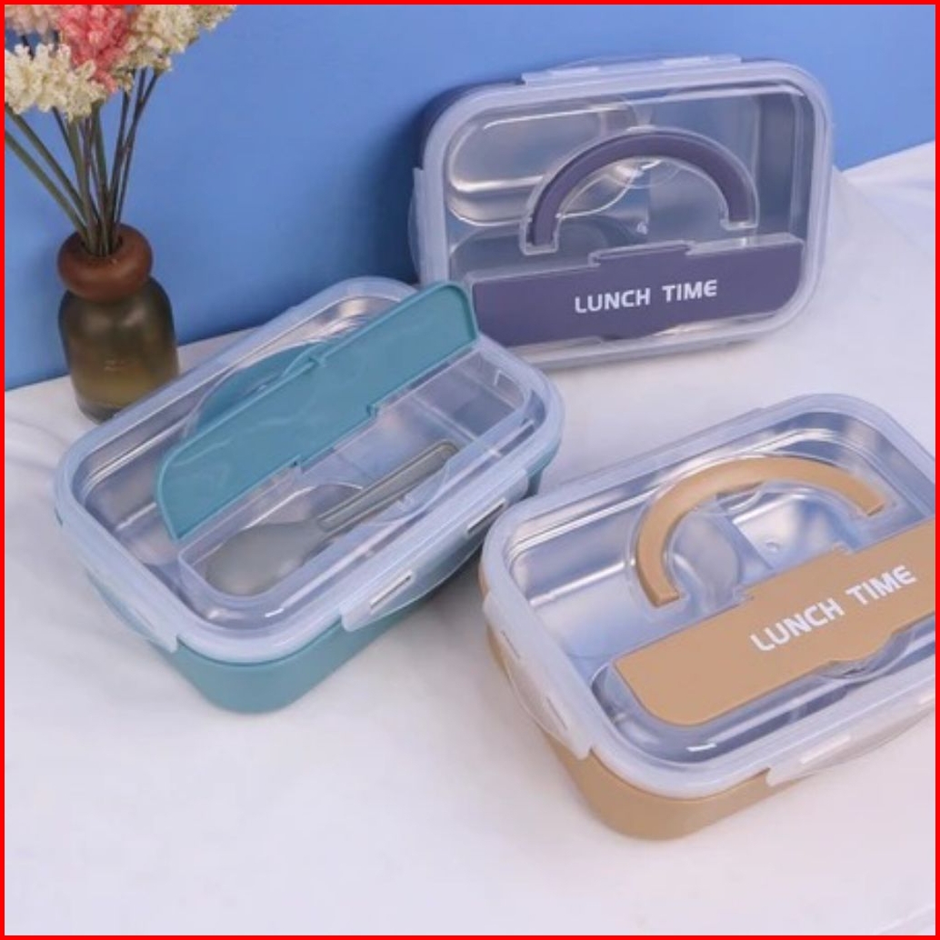 Lunch Box Kotak Bekal Makan 900ml Stainless Steel 3 Lock Bonus Sendok Makan