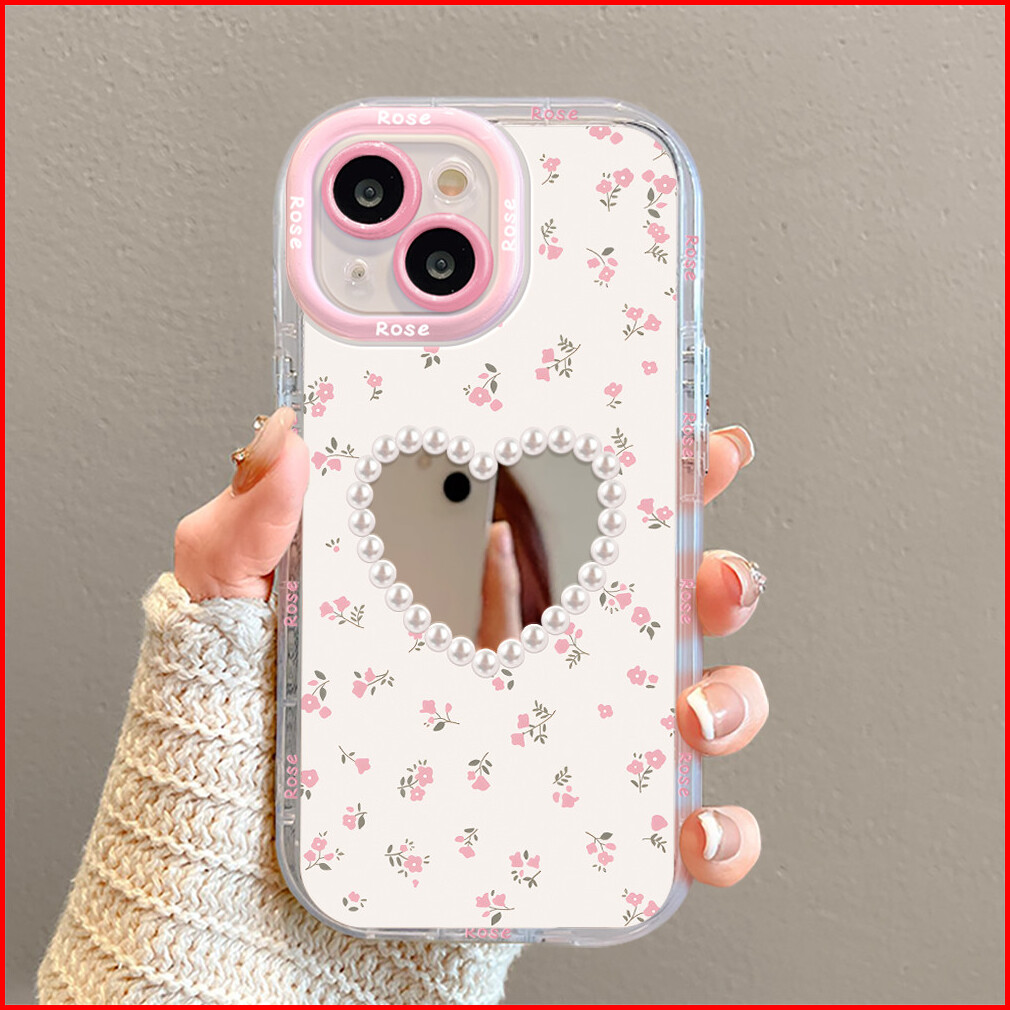 Case Untuk Iphone 16 13 11 15 Pro Xs Xr 15 14 Plus 11 12 13 14 Pro Max 7 8 Xs Max Casing Ponsel Bunga Cantik Bercermin D