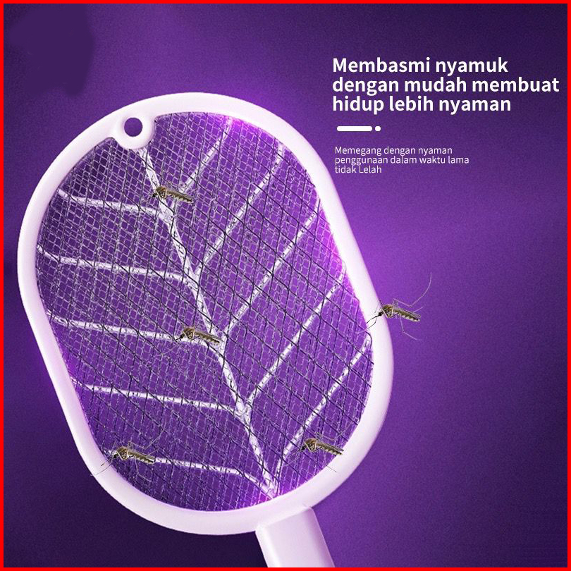 Raket Nyamuk Elektrik Cas Tahan Lama Murah Awet Charger Usb 2 In1 Raket Nyamuk Standing