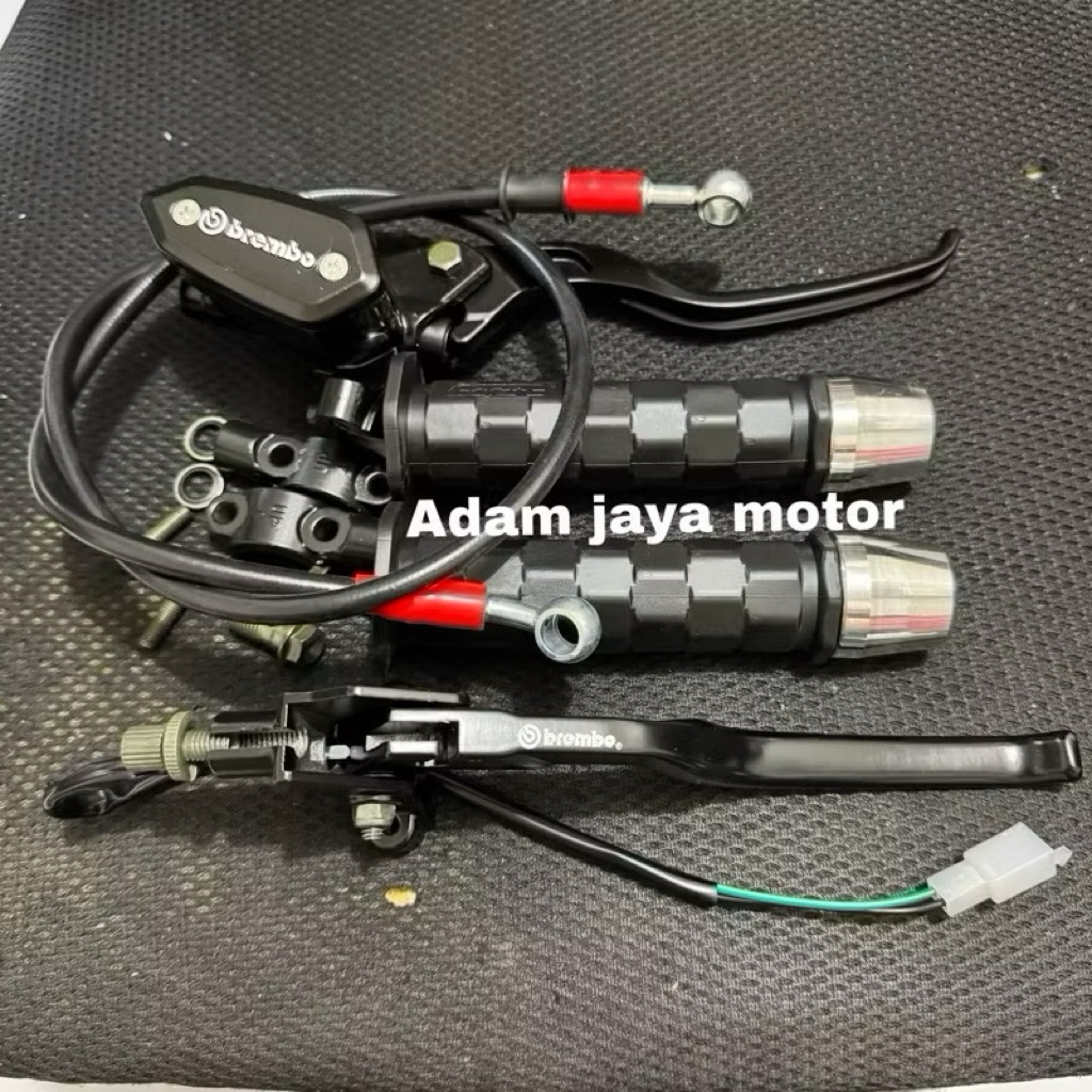 Paket Master rem 4in1 Tabung Oval kaca + Handgrip RCB HG55 + Jalu stang CNC + Selang rem 95cm / Vixion Cbr 150 Cb 150 Rx king Vario Beat Mio Satria fu Sonic tiger mega pro Xsr Dll