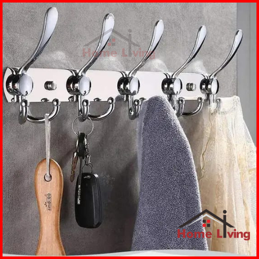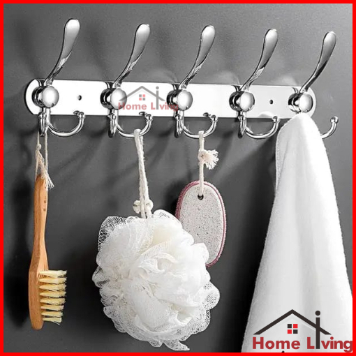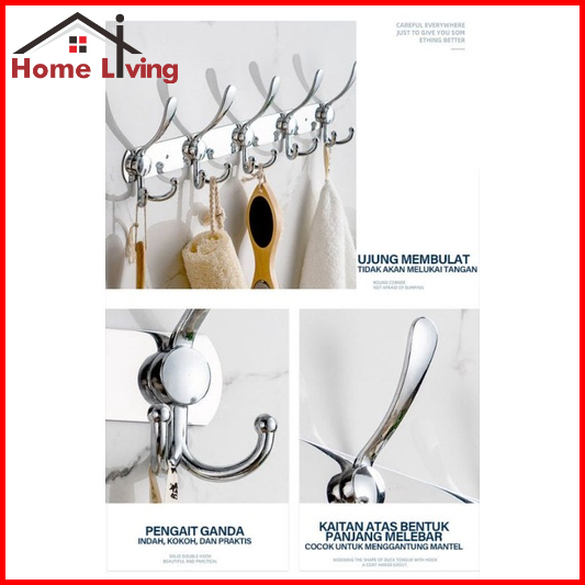 Hl Kapstok Stainless Steel Gantungan Baju Dinding Kapstok Gantungan 2 Cabang 5 Kait