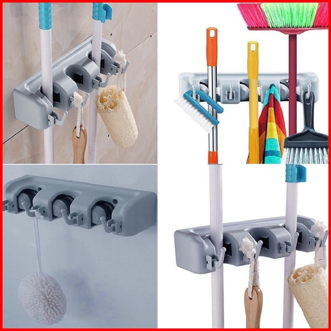 Gantungan Pel Sapu 3 Hook Gantungan Sapu Mop Hook Hanger Holder 3 Slot