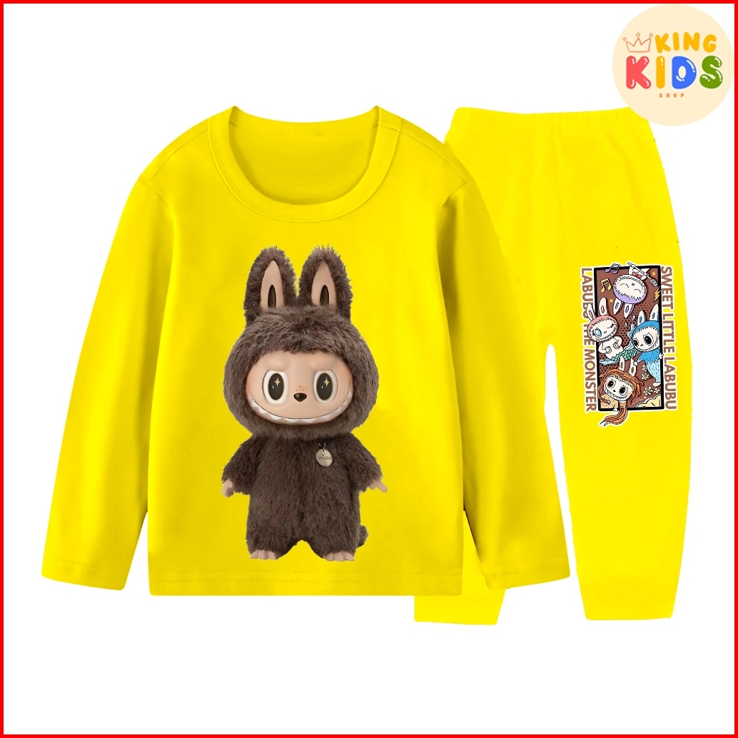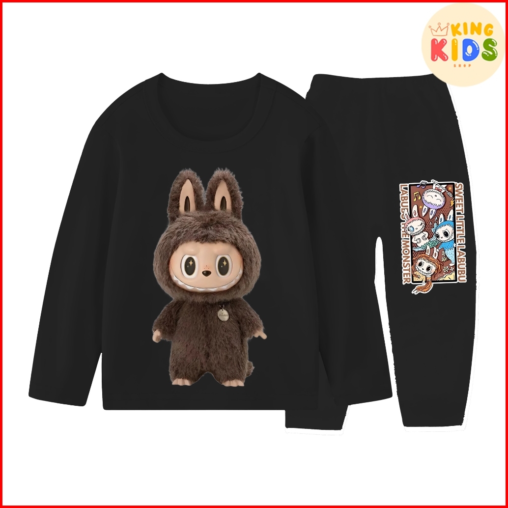 Piyama Baju Tidur Lengan Panjang Anak Laki-laki Dan Perempuan Ukuran 1-10 Tahun Motif Labubu Coklat