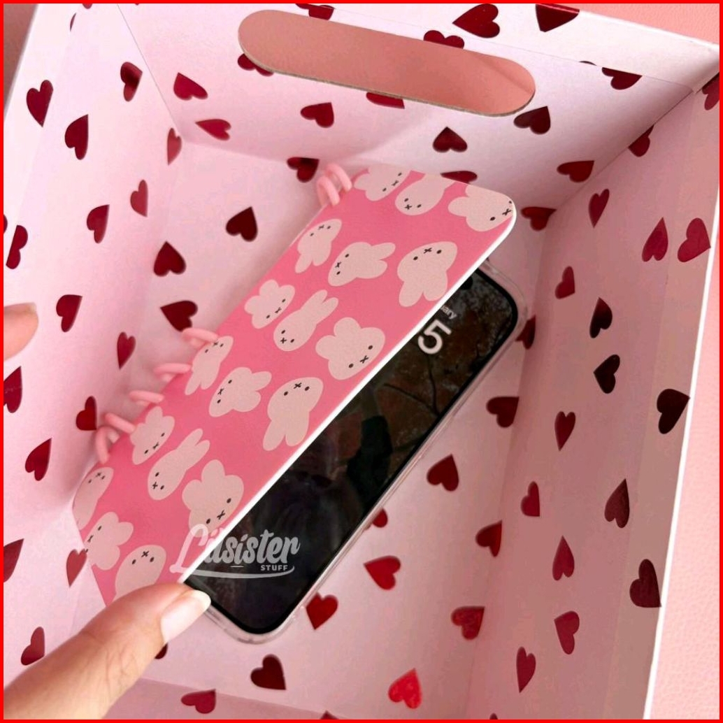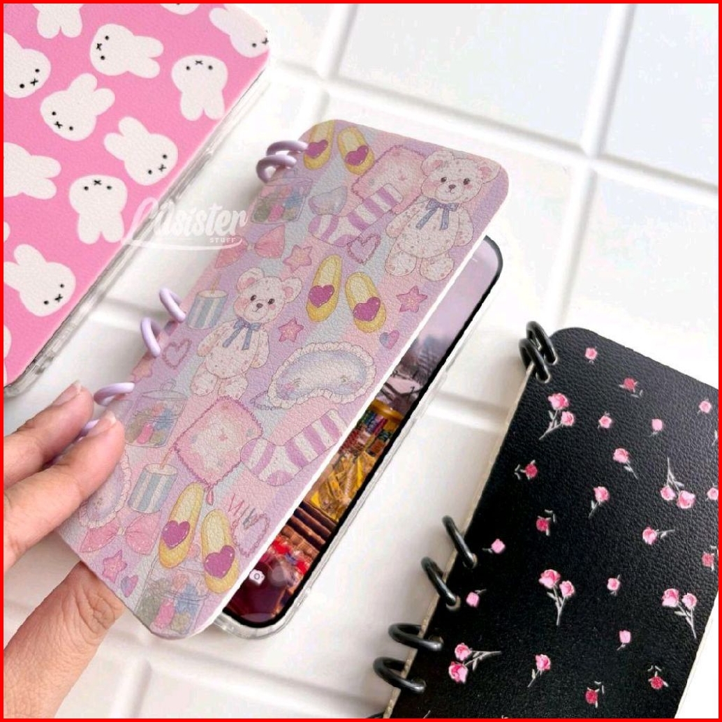 Lilsisterstuff Iphone 17 Series Mochi Bunny Friends Campus Flipcase Leather Silicone Phone Case 11 12 13 14 15 16 17 Pro