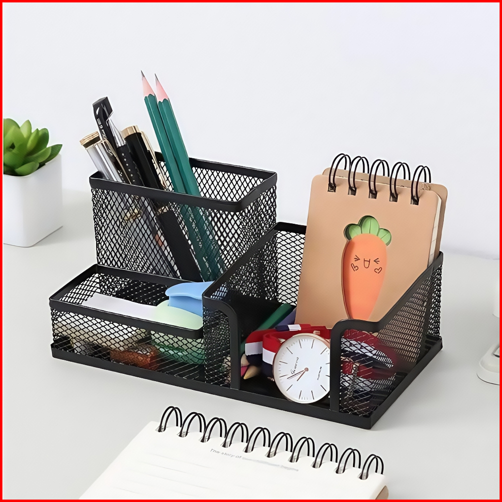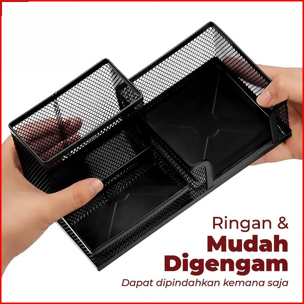 Tempat Memo Pensil Meja Kantor 3 Sekat Jaring Besi - Set Organizer Meja Minimalis Praktis Dan Awet Baca Deskripsi