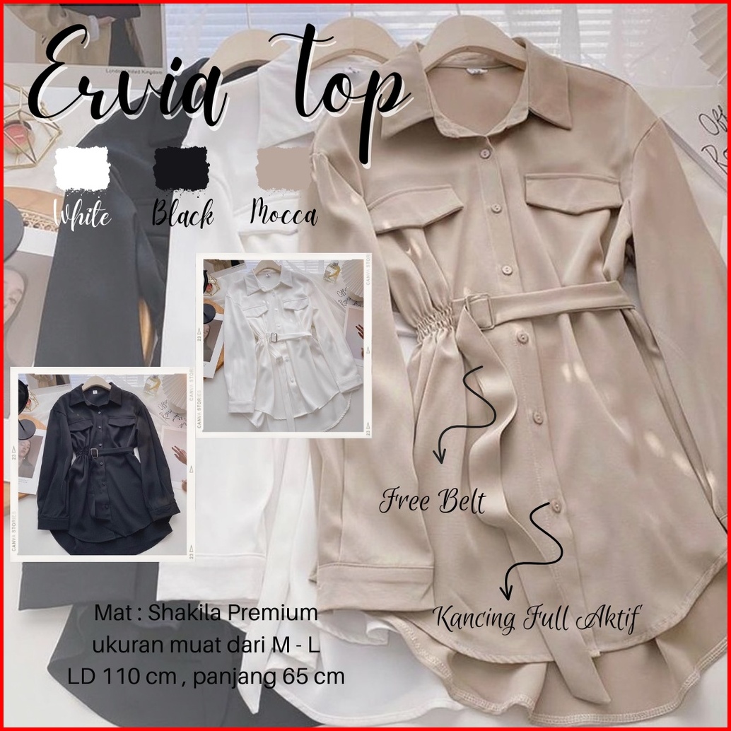 Prqueen Ervia Top Blouse Kemeja Wanita Lengan Panjang Korean Style Baju Atasan Wanita Kantoran