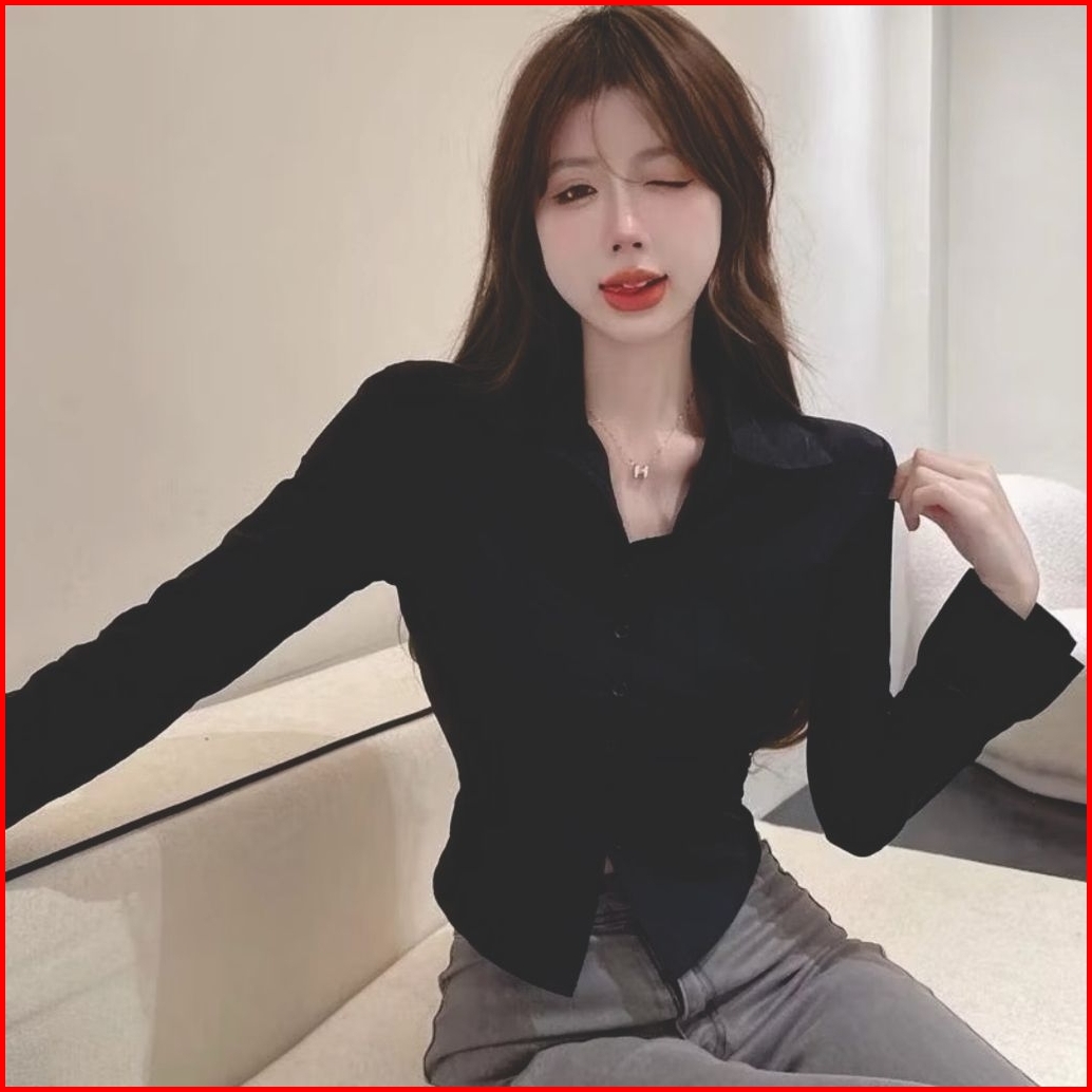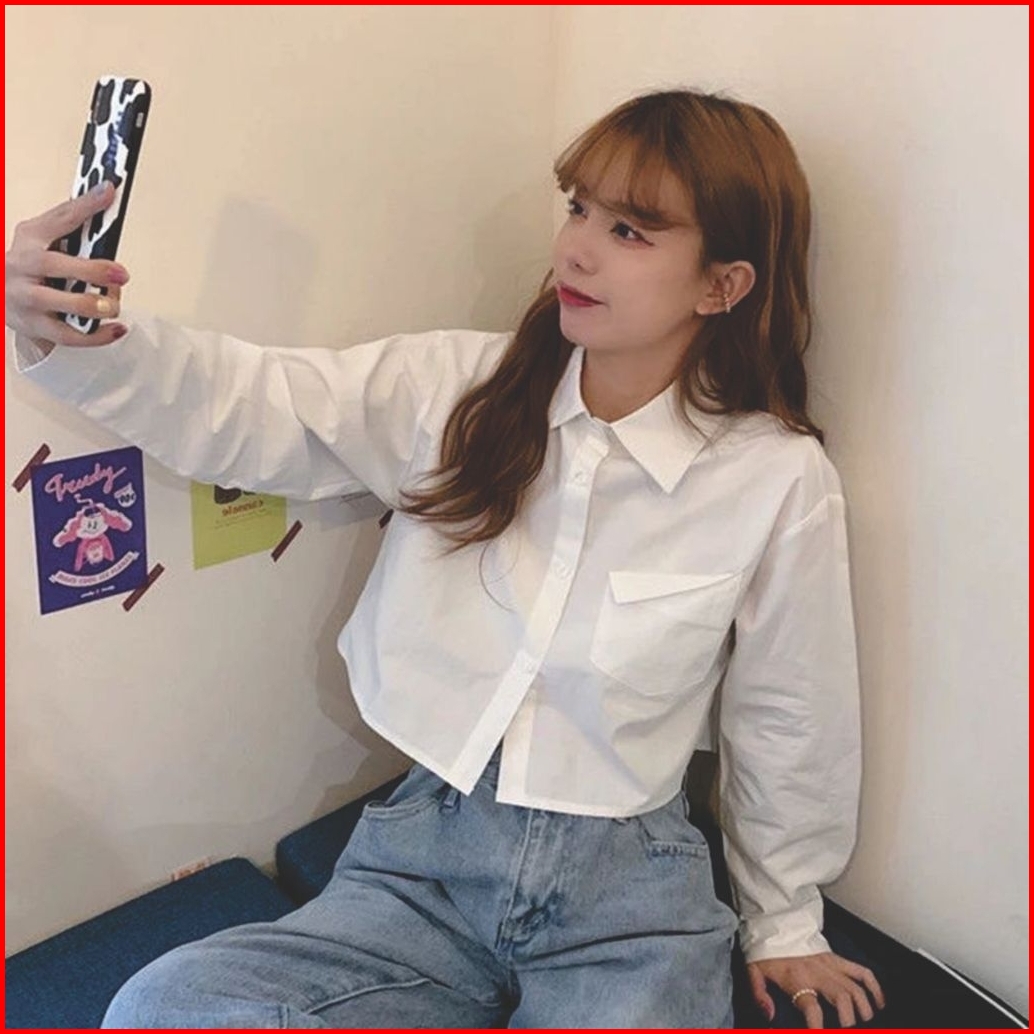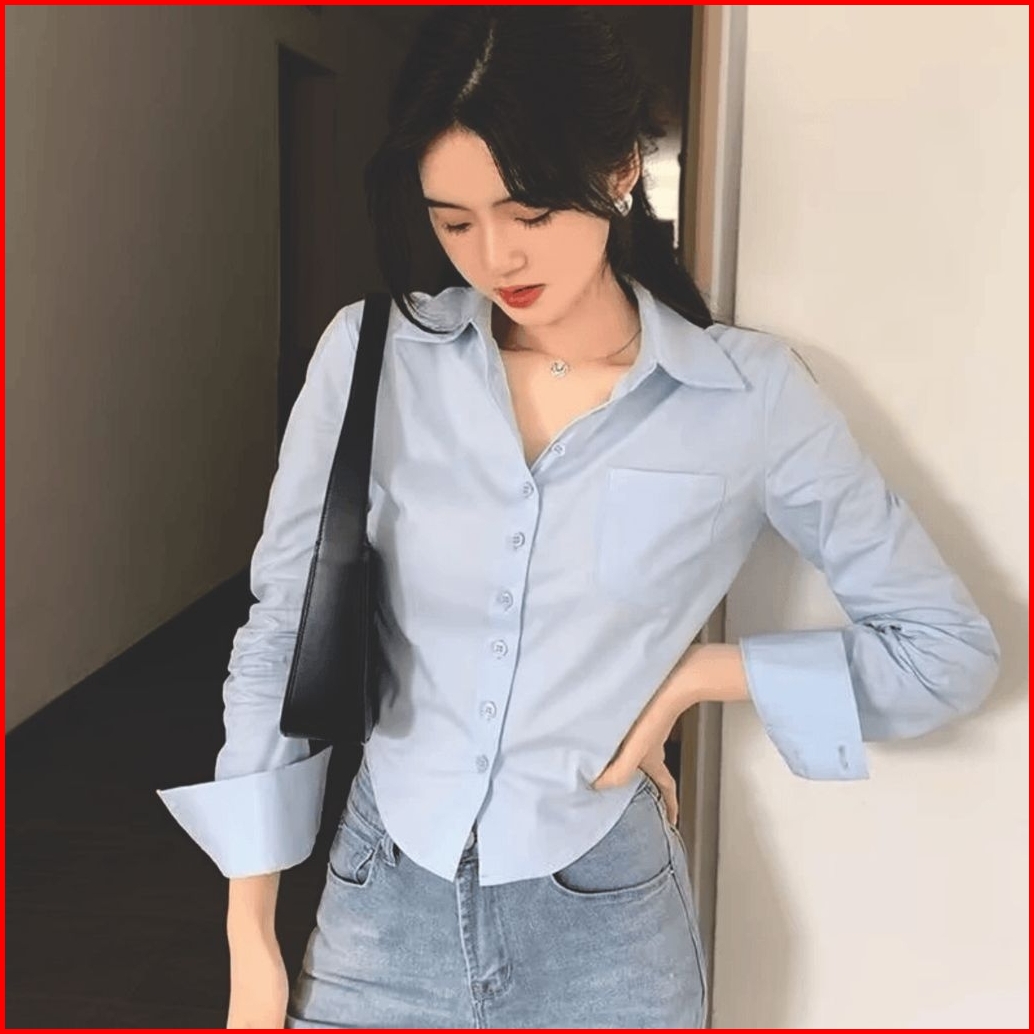 Kemeja Wanita Lengan Panjang Gaya Korea Kemeja Kasual - Kemeja Wanita Polos Crop Top Lengan Panjang Kemeja Terlaris
