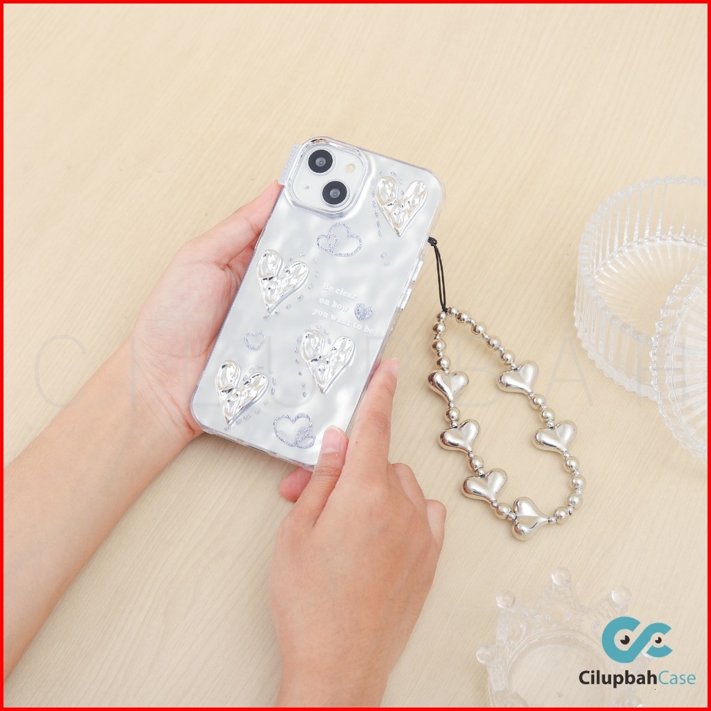 3d Silver Love With Lanyard Case For Iphone Xr Xs Max 11 12 13 14 15 16 Plus Pro Max