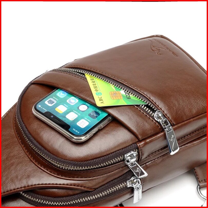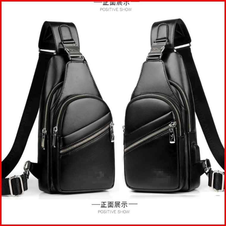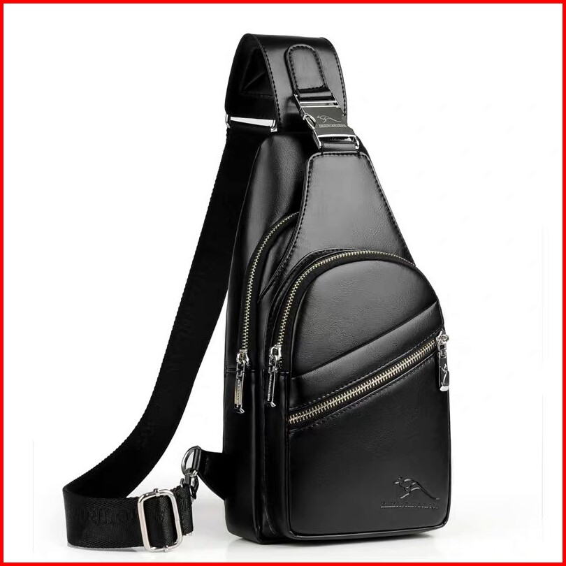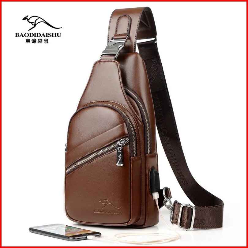 Tas Selempang Pria Kulit- Slingbag Pria Trendy Dan Tahan Air Gratis Dompet Dan Jam Led Dpjasoo