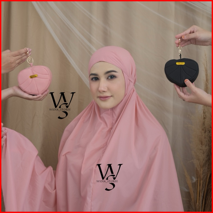 Mukena Parasut Premium Travel Polos 2in1 Free Heart Pouch Mini