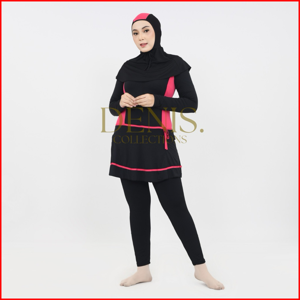Setelan Pakaian Renang Muslim Polos Polyester Baju Renang Muslim Muslimah Wanita Dewasa Hijab Poliester Swim Suit
