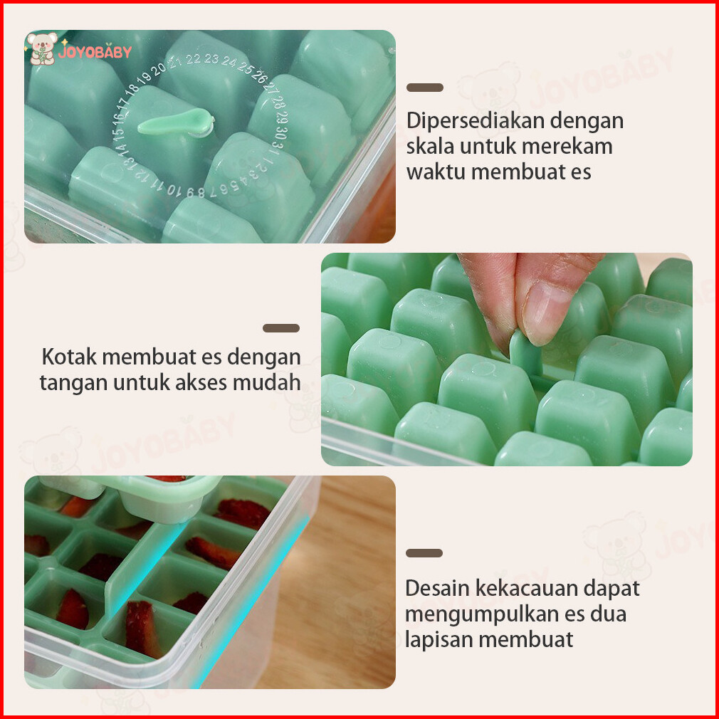Joyobaby Cetakan Es Batu Dengan Tutup 32 Grid 2 Tray Wadah Es Batu Ice Cube Tray