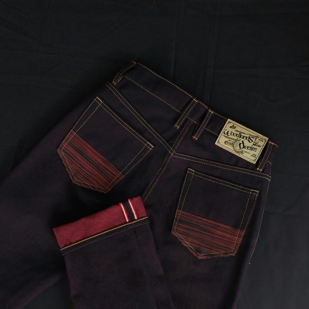 Denim Weft Red 15 Oz Unsanforized Selvedge Acc Raw Denim Celana Jeans