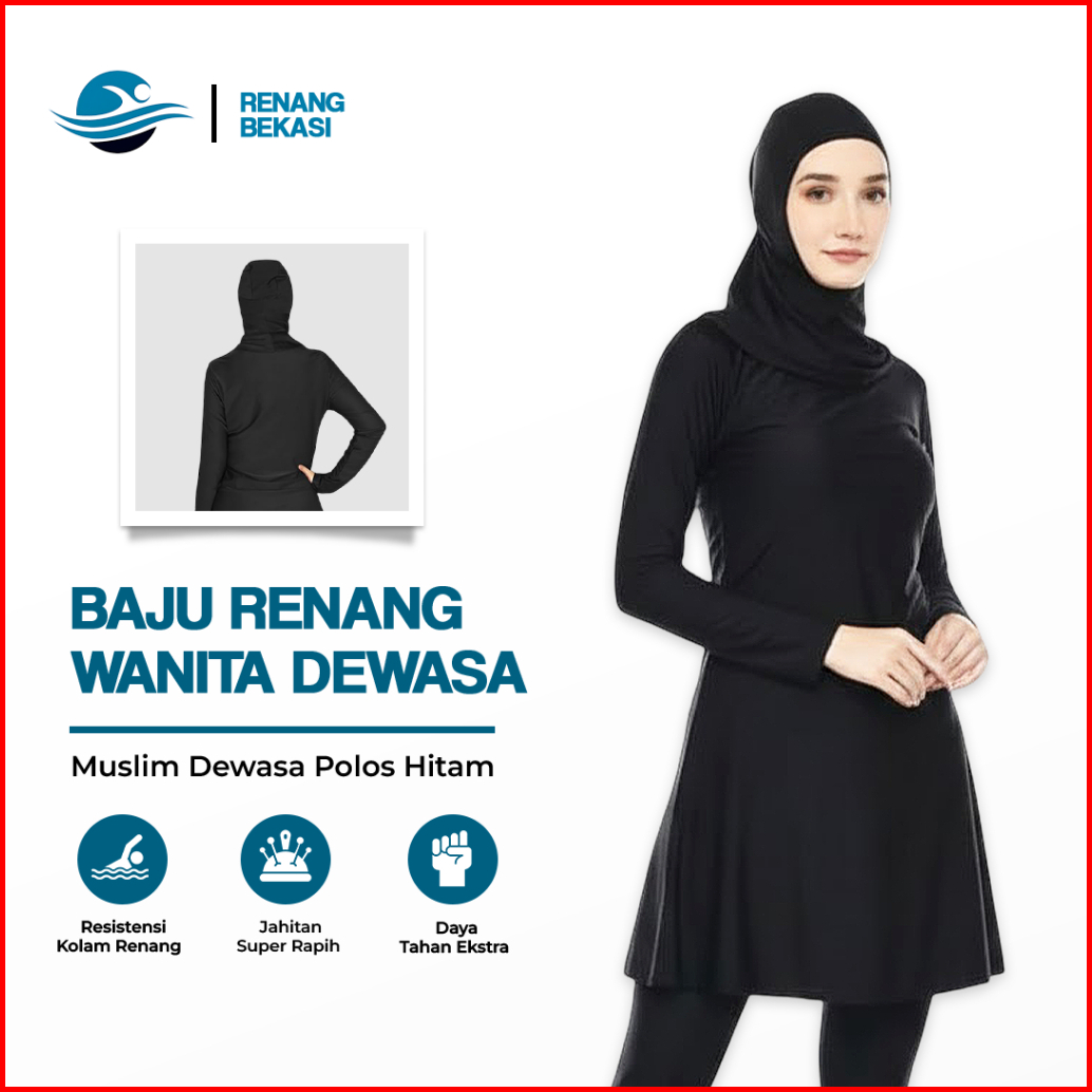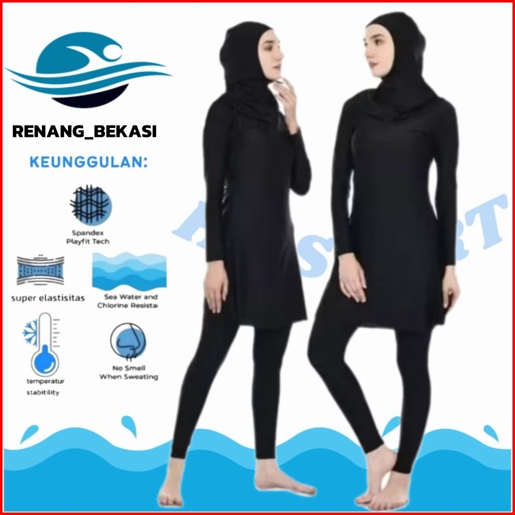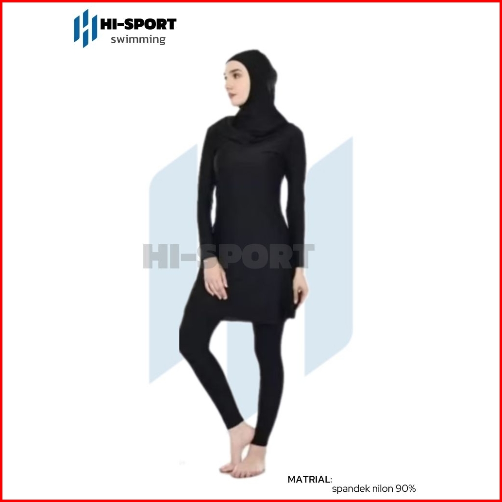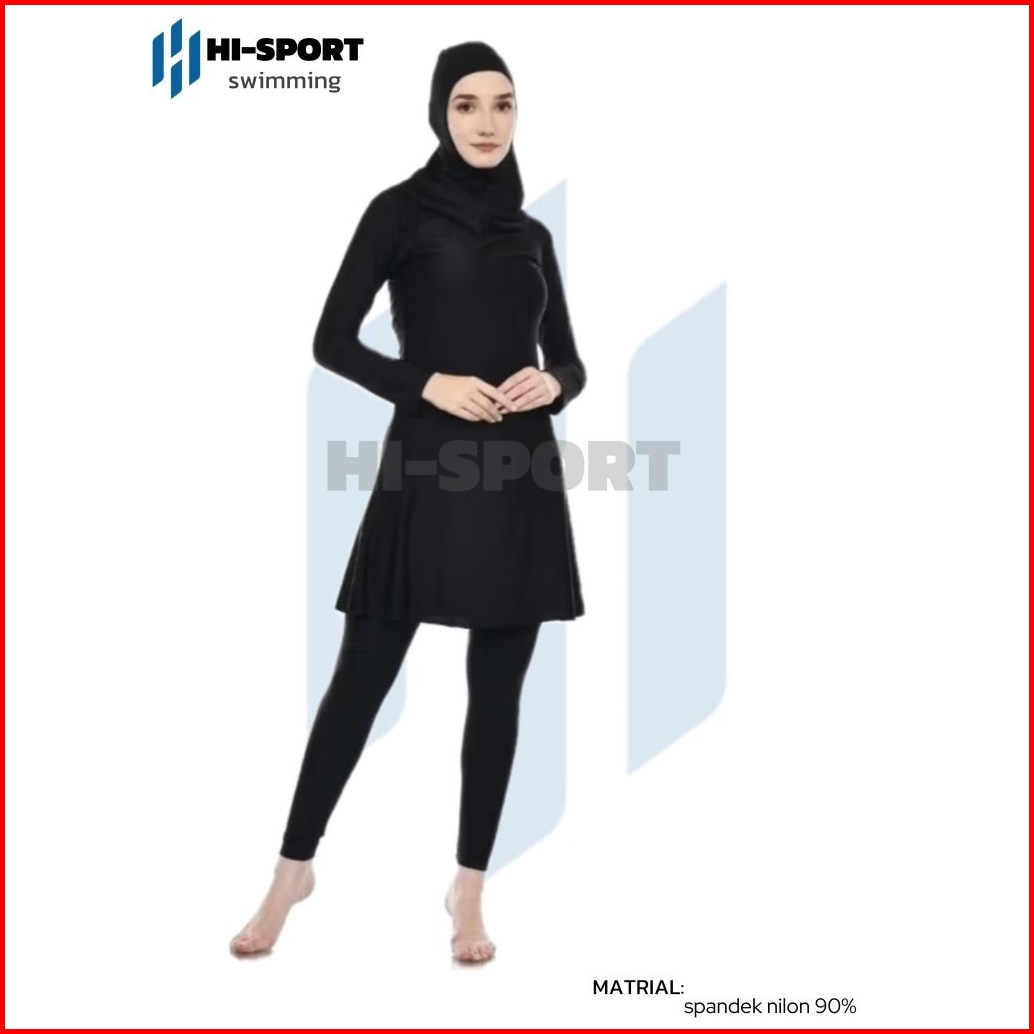 Hisport Baju Renang Muslimah Wanita Dewasa Remaja Swimwear Hijab Spandex Lokal Full Hitam