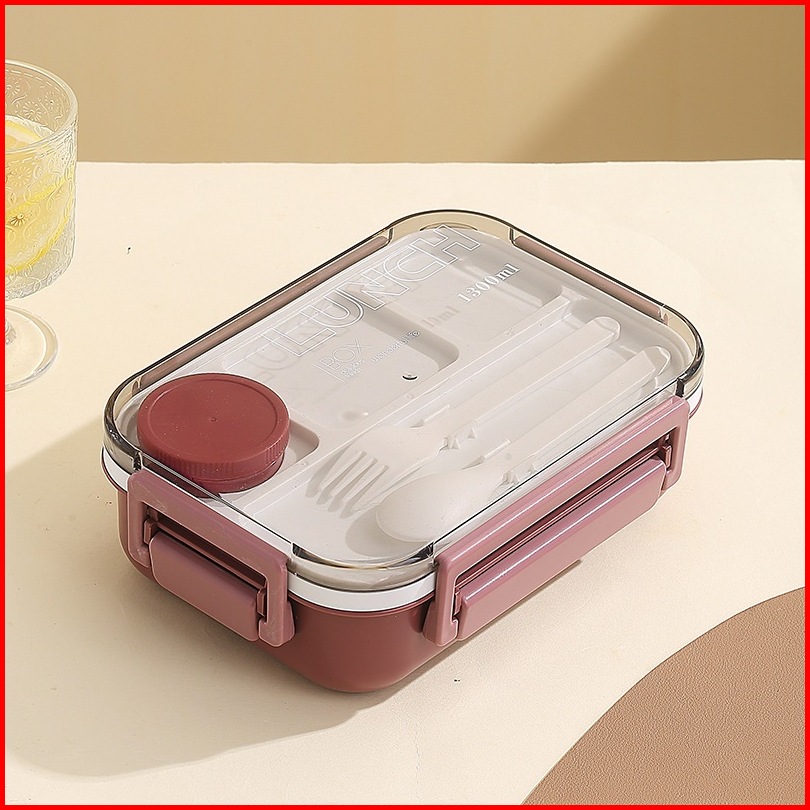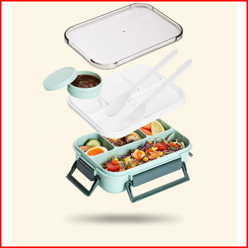 Uniqsoo Lunch Box Bpa Free Kotak Bekal Anti Tumpah 4 Sekat 1300ml Kotak Makan Wadah Bekal Free Sendok Garpu Tempat Saus