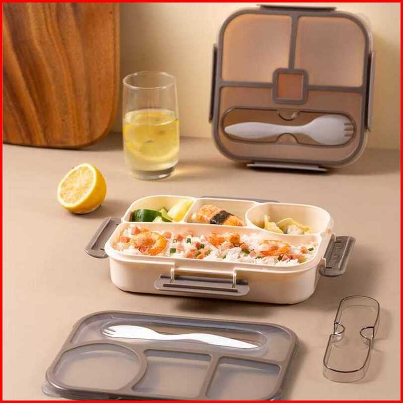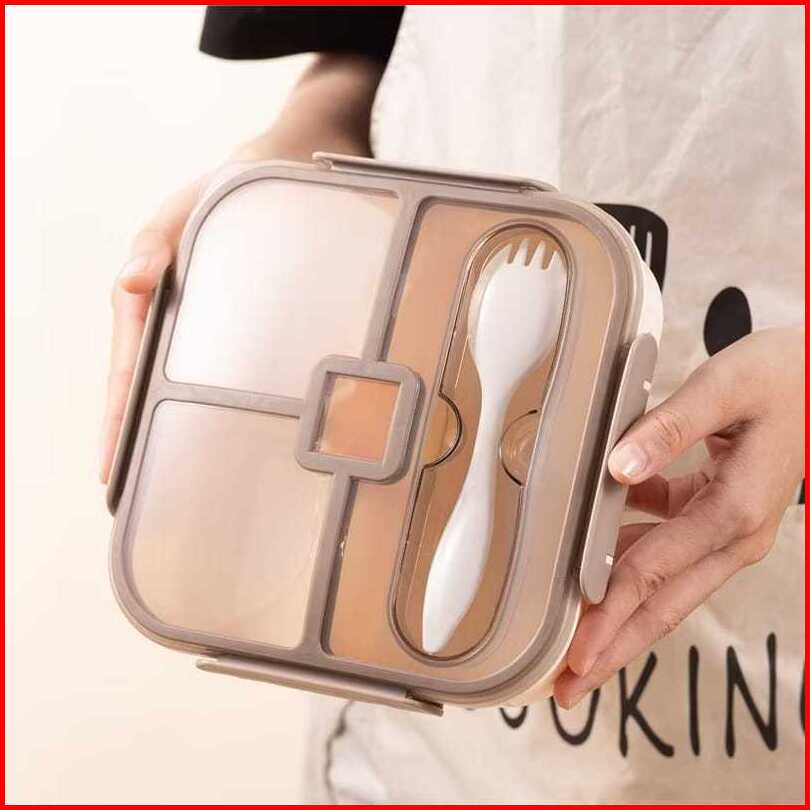 Lunch Box - Kotak Bekal Bento Set Bersekat - Kotak Makan Dewasa Dan Anak - Free Sendok Dan Garpu