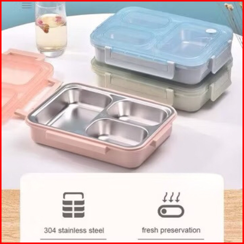 Lunch Box Stainless Steel 304 Kotak Makan Bento Stainless Dengan Tutup Karet Yang Tahan Panas Dan Anti Tumpah