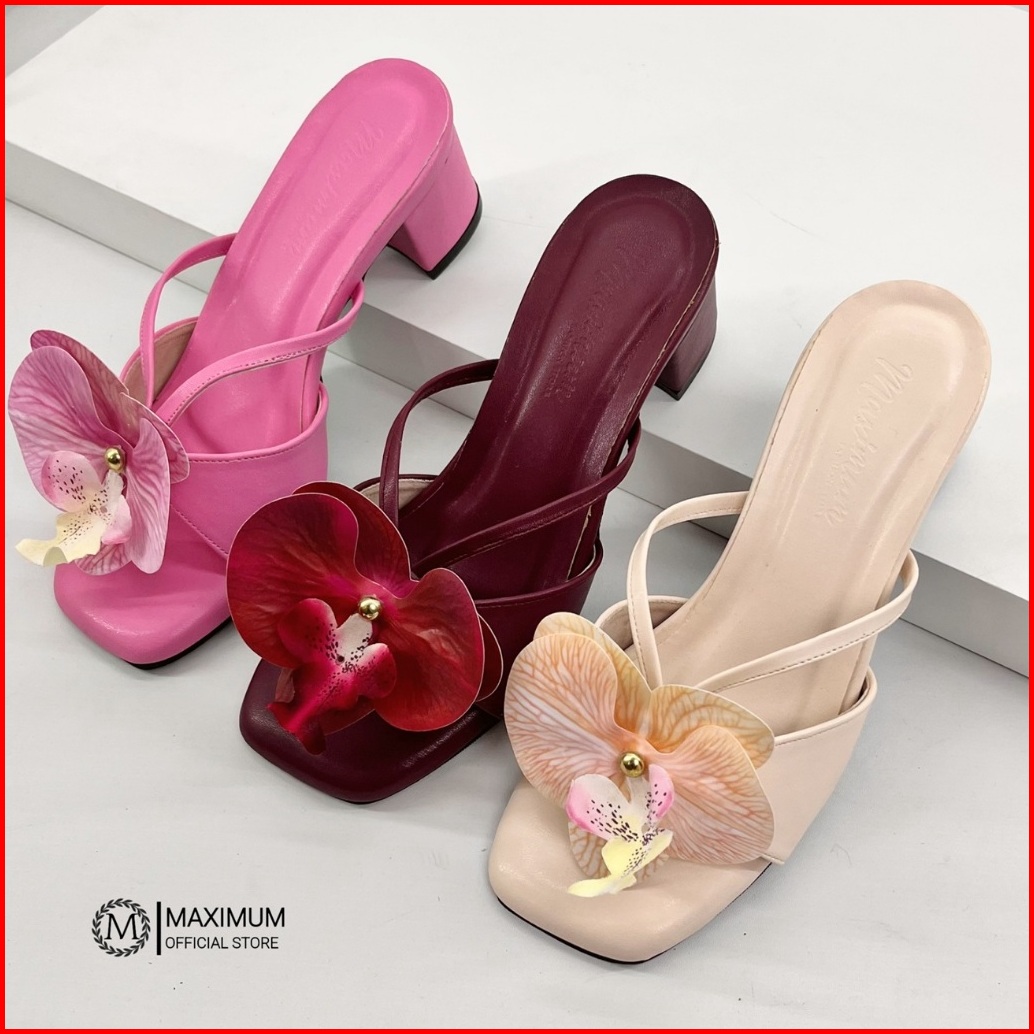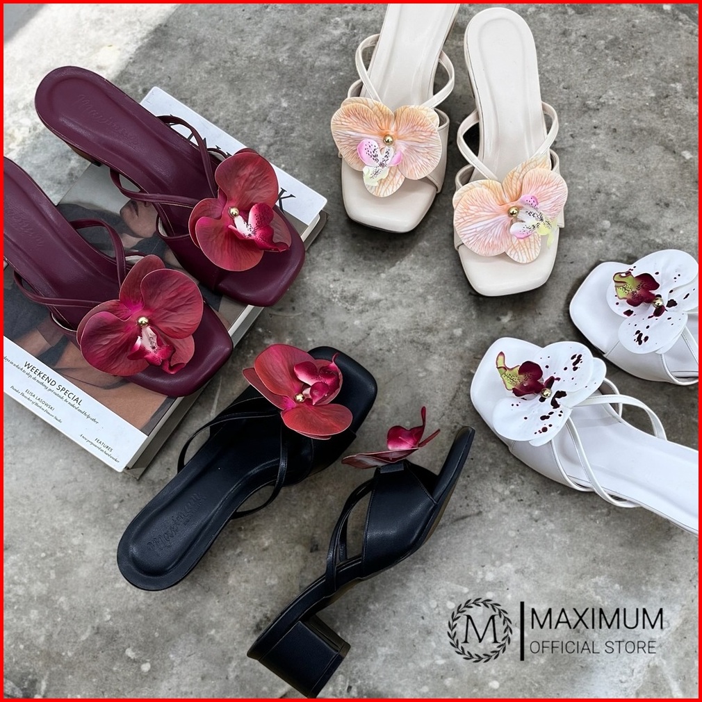 Maximum - Flowers Heels Sandal Wanita Premium Hak Tahu Jolla Sendal Bunga Orchid Tinggi 5 Cm