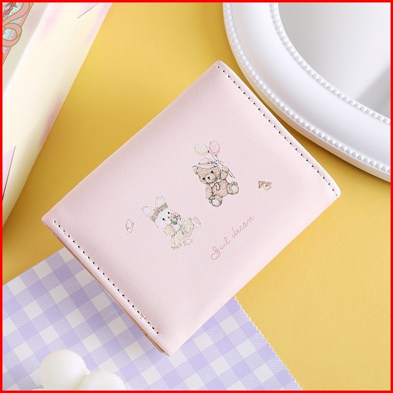 Dompet Rabbit Bear Coquette Korea Pink Lipat Wallet Naomi