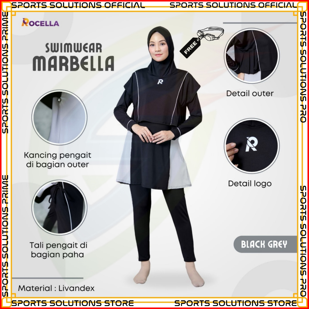 Baju Renang Muslimah - Baju Renang Wanita Muslim - Baju Renang Muslimah Hijab - Baju Renang Dewasa Muslimah Rocella Swim