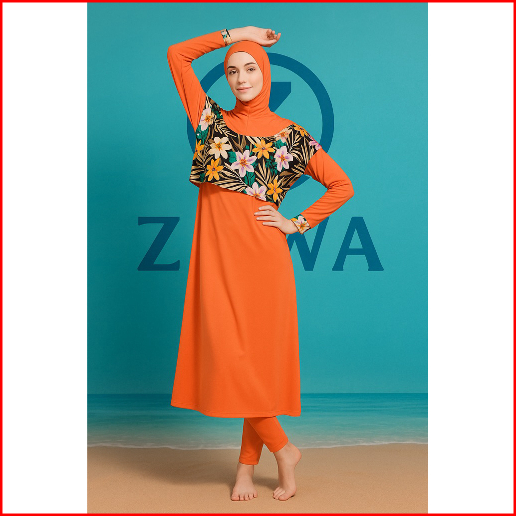 Zawa Long Tunic Muslimah Swimwear Floeer - Baju Renang Muslimah Hijab Syari Sporty Remaja Perempuan