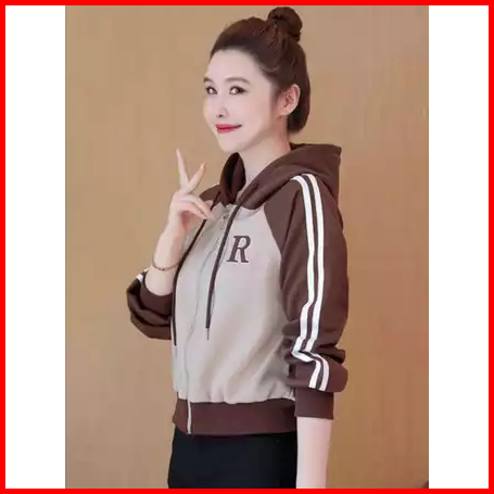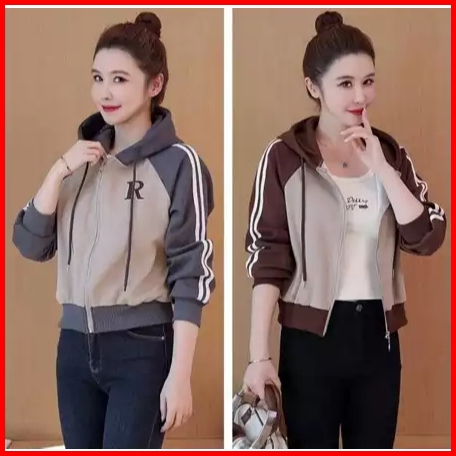 Jaket Wanita Korean Style Zipper Hoodie R Crop - Jaket Wanita Santai Kekinian