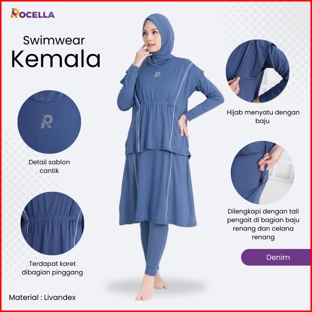Baju Renang Muslimah - Baju Renang Wanita Muslim - Baju Renang Muslimah Hijab - Baju Renang Dewasa Muslimah Rocella Swim