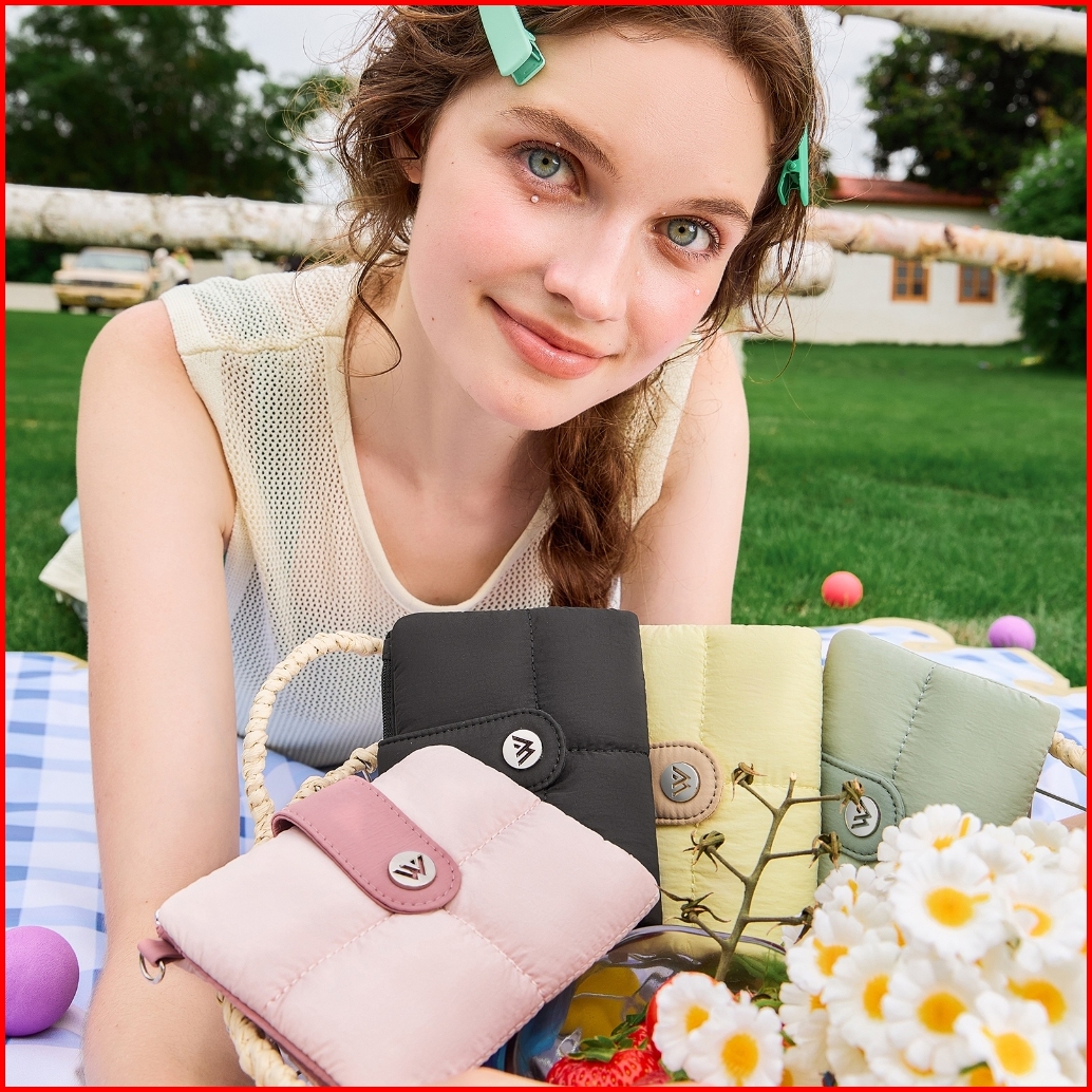 Westbronco Puffer Velvie Wallet Color-block Wallet Banyak Kompartement Kancing Magnet Tas Tangan Cocok Untuk Dibawa Kelu