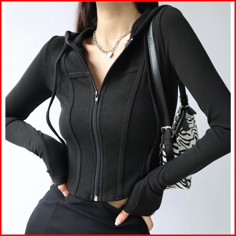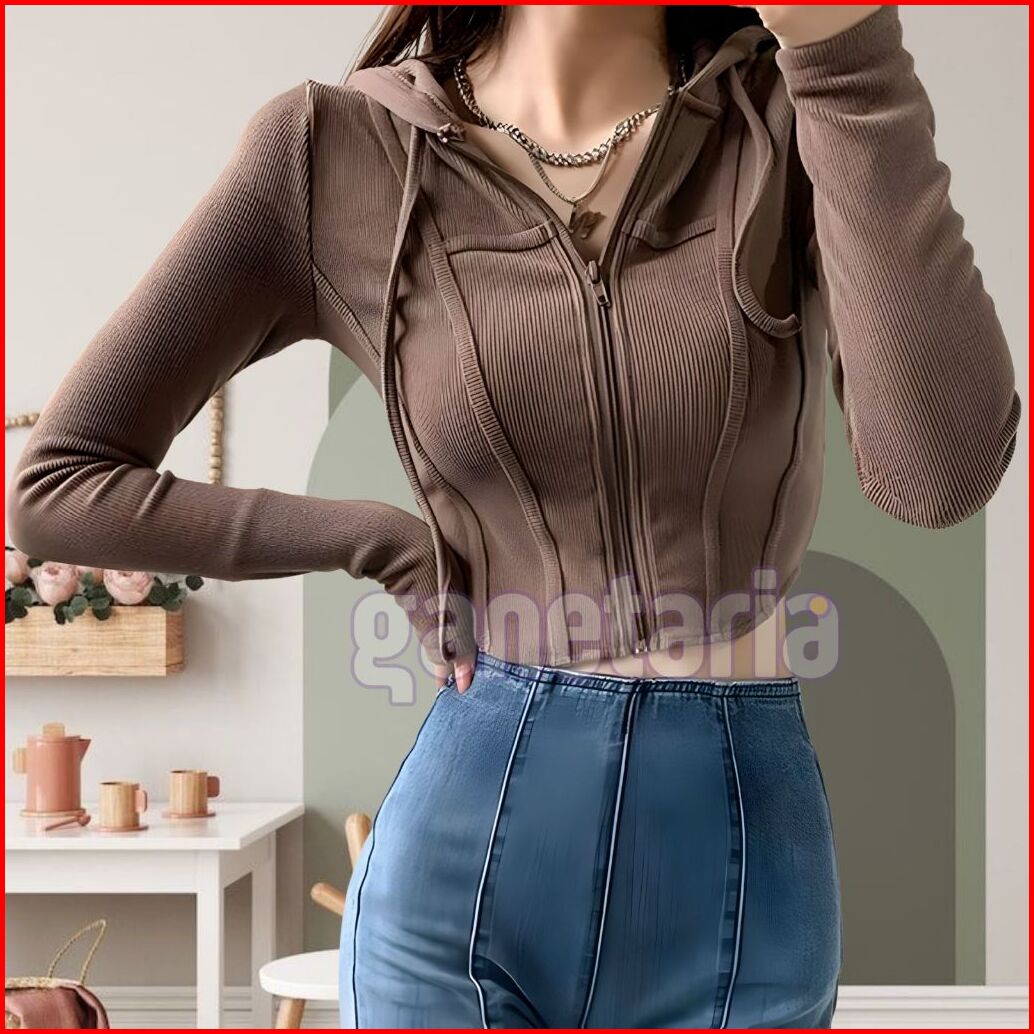 Grania Premium Jaket Hoodie Crop Top Wanita Kekinian Outfit Ootd Korean Style Jacket Hudie Cewek