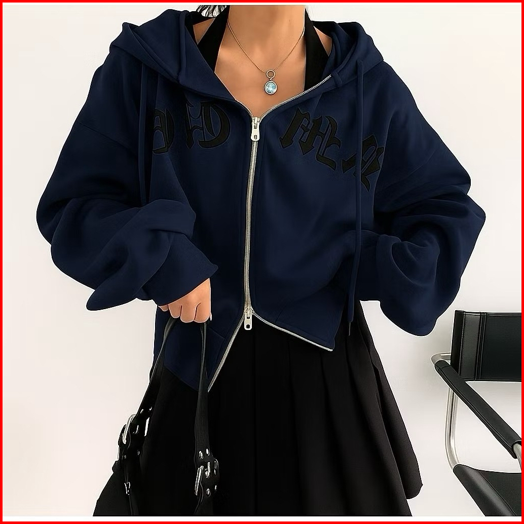 Hoodie Japanese Zipper Jaket Wanita Oversize Jaket Sweater Double Zipper Wanita Korean Style
