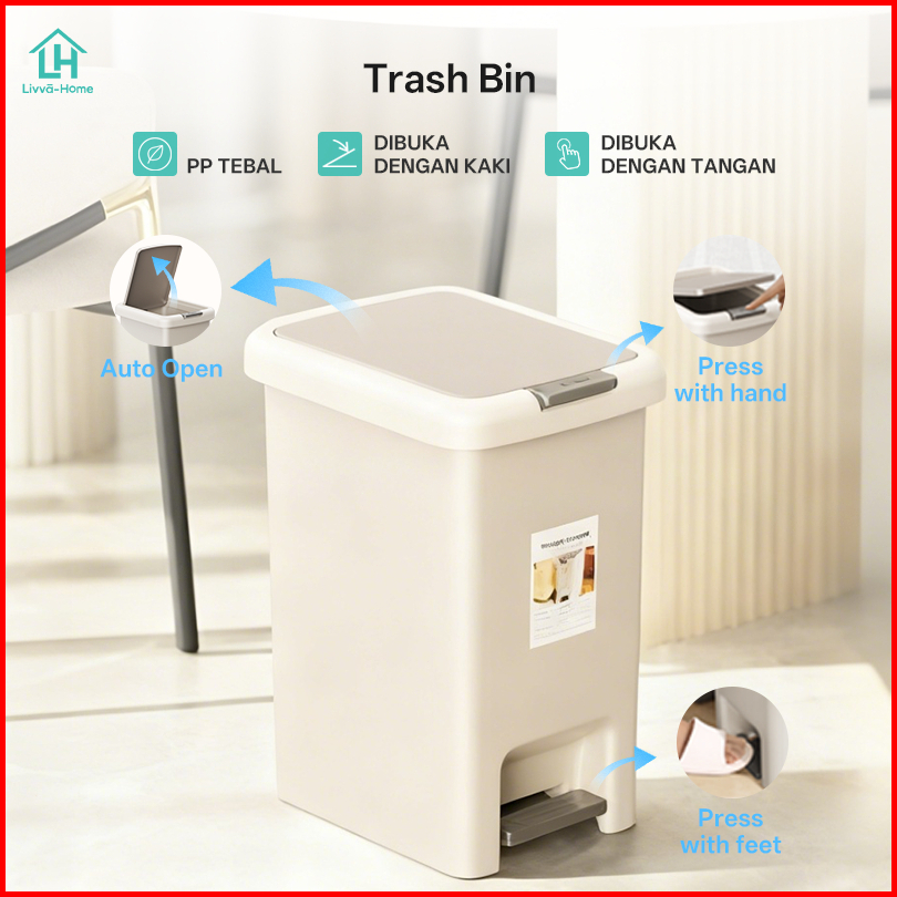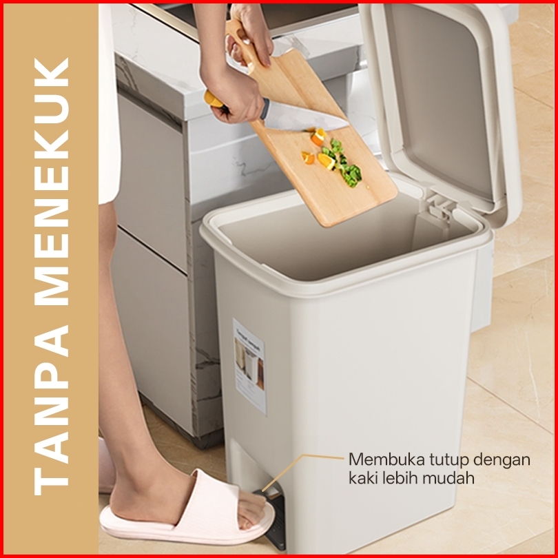 Livva-home Tempat Sampah Injak Tong Sampah Tertutup Trash Bin 15l Kotak Sampah Modern Tutup Rapat Bahan Pp