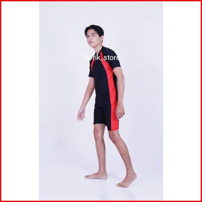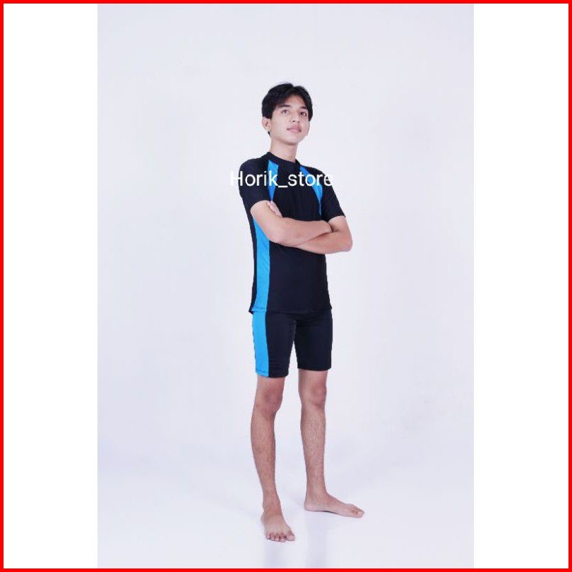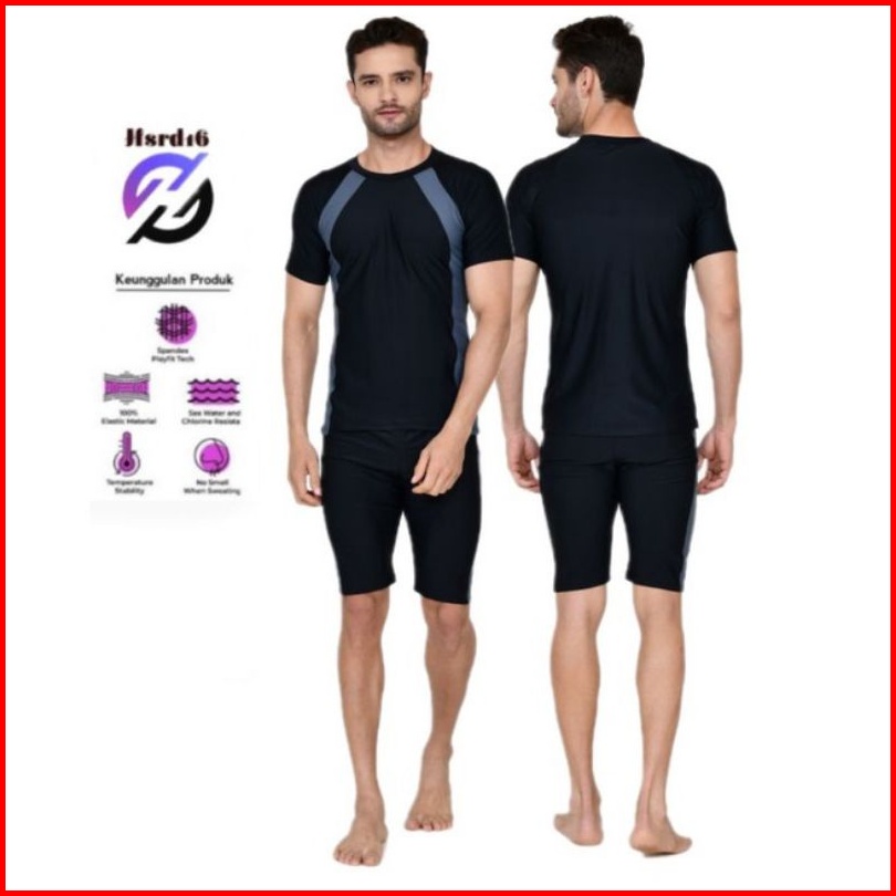 Baju Renang Setelan Pria Dewasa Premium Hitam Polos Nyaman Lentur S6l