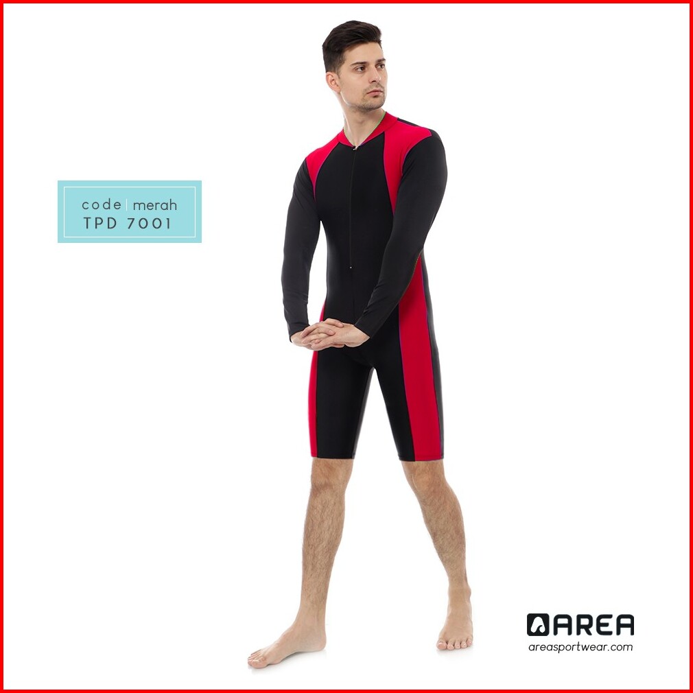 Baju Renang Pria Dewasa Lengan Panjang Celana Pendek Polos