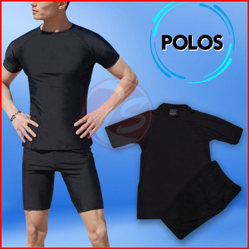 Setelan Renang Pria Hitam Polos Baju Renang Pendek Celana Renang Murah Setelan Baselayer Black