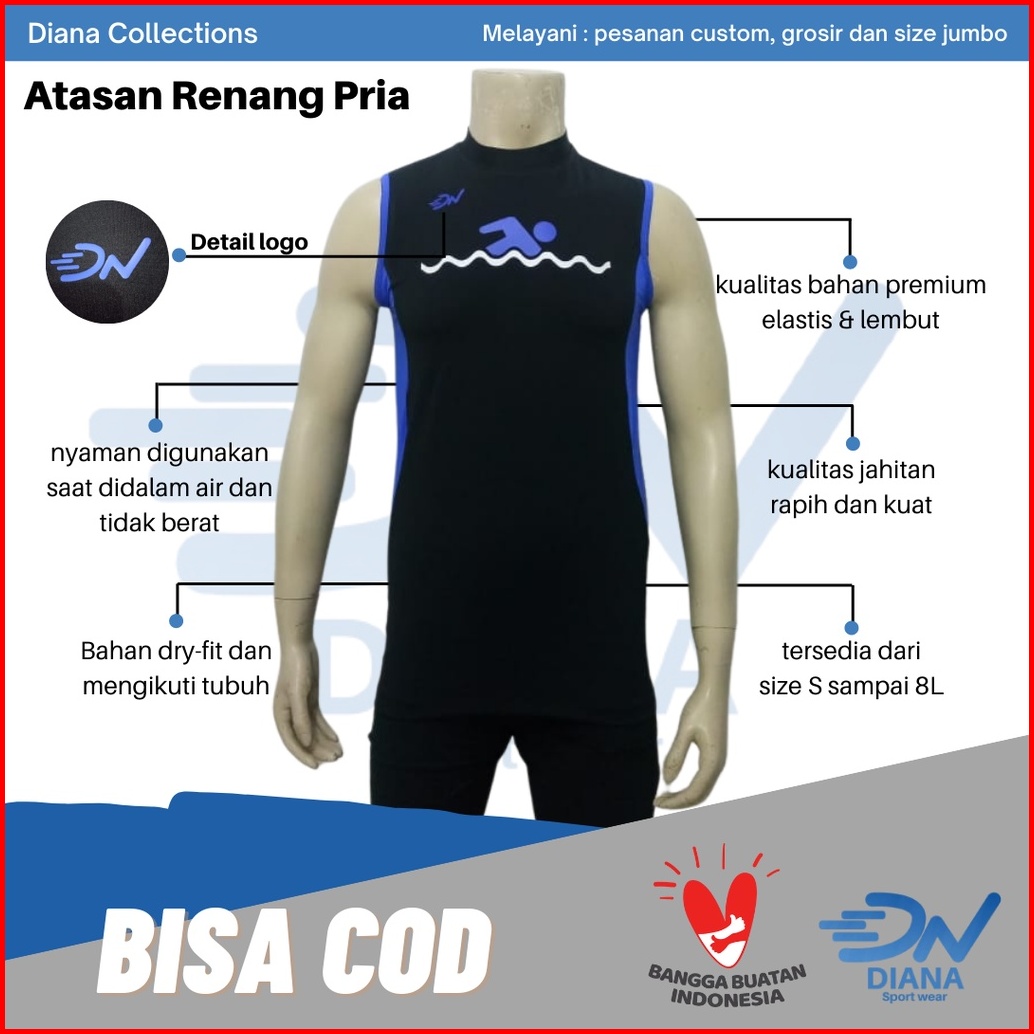 Atasan Baju Renang Tanpa Lengan Baju Renang Pria Jumbo Atasan Renang Pria Atasan Renang Pria Bigsize Baju Renang Laki-la