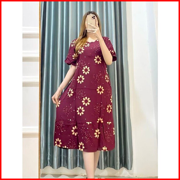 Daster Wanita Terbaru Rayon Busui Resleting Depan - Baju Tidur Daster Kekinian Lengan Pendek Motif