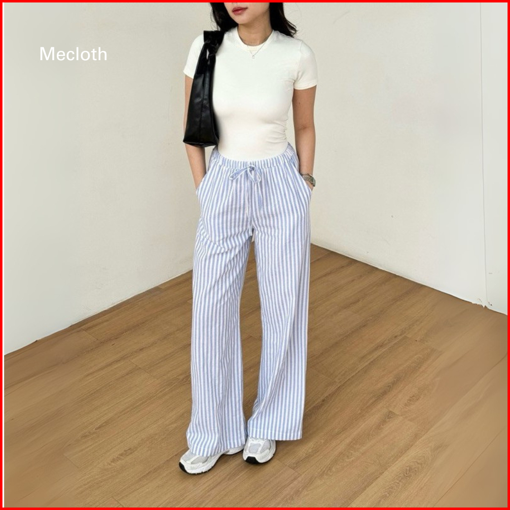 Celana Panjang Wanita Highwaist Kekinian - Kulot Salur Stripe Highwaist