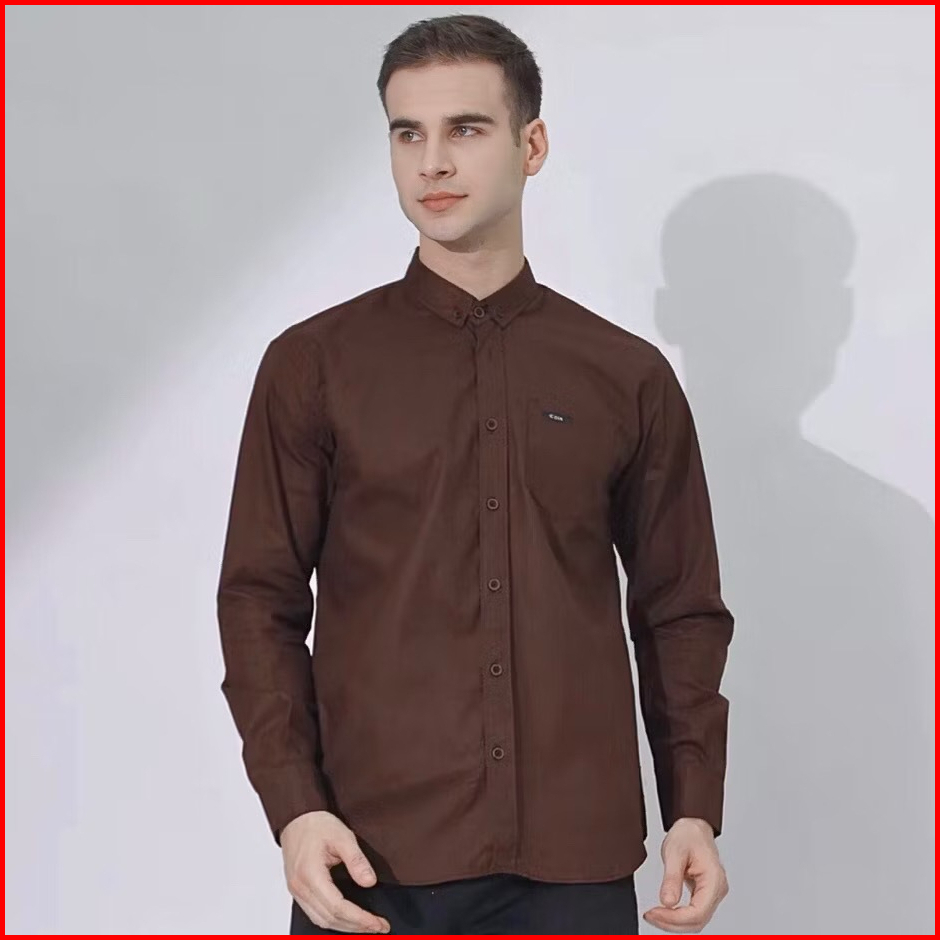 Kemeja Polos Coklat Mahogany Pria Lengan Panjang Slimfit Kemeja Hitam Kemeja Putih Kemeja Casual