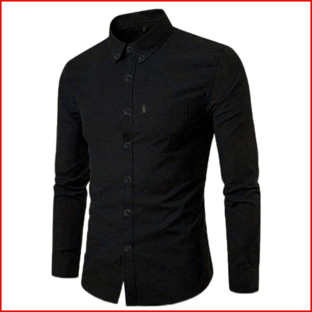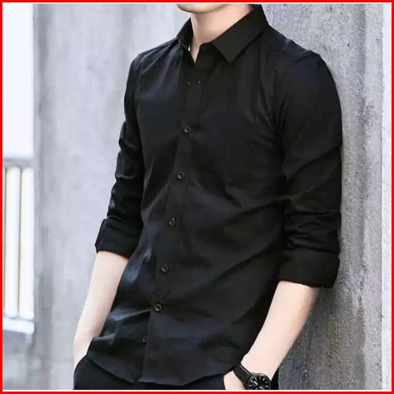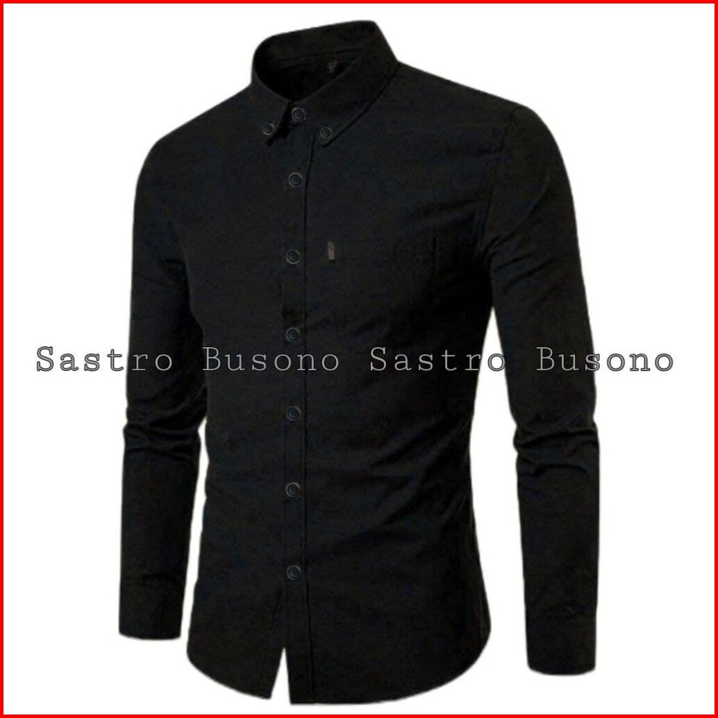 Kemeja Pria Lengan Panjang Polos Distro Slimfit Basic Casual Modern Kantor Formal Hitam Putih