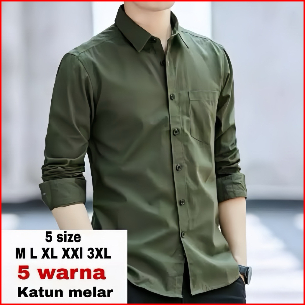 Kemeja Polos Pria Lengan Panjang Kasual Bahan Katun Premium Quality