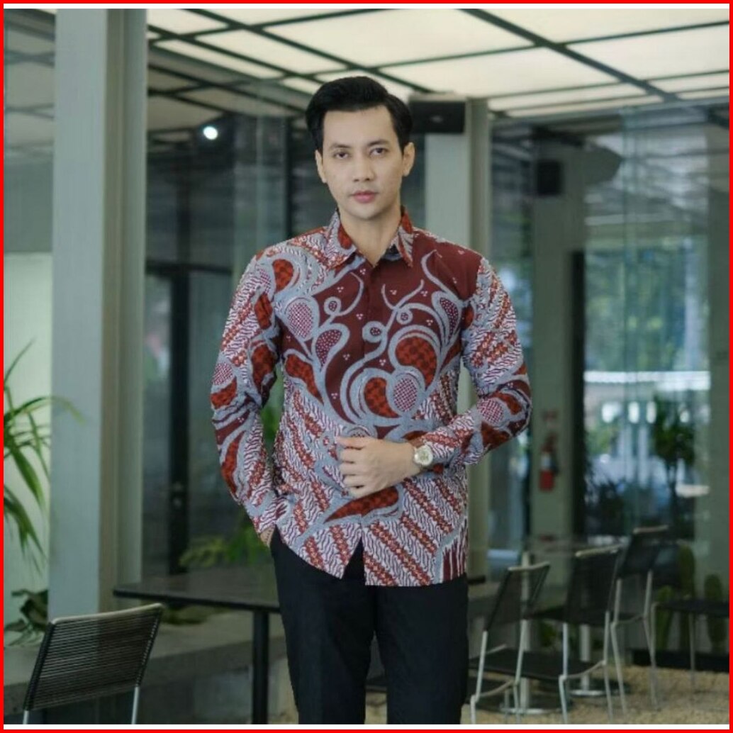 Kemeja Batik Pria Lengan Panjang Size M L Xl Xxl Terbaru Motif Simetris Nyambung Seragam Kantor