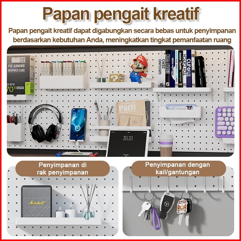 Pegboard Hole Board Dinding Papan Lubang Rak Dekorasi Gantungan Peralatan Dapur Rumah Kantor Tanpa Paku Decor Pegboard D