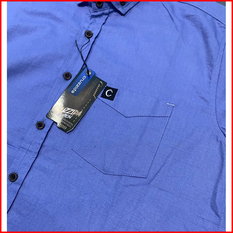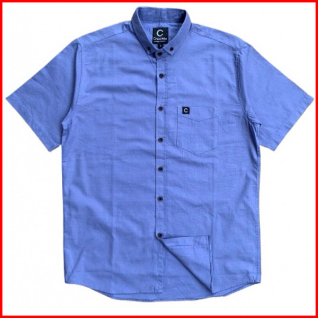 Cruzzida - Kemeja Polos Biru Denim Pria Lengan Pendek Casual Slimfit Matt Katun Cigaret