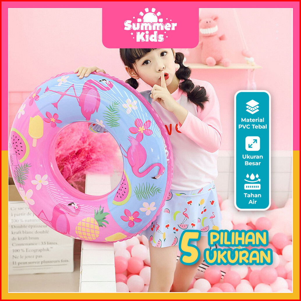 Pelampung Ban Renang Anak Motif Flamingo Pink Dua Warna Pelampung Bulat Swimming Ring Summer Kids
