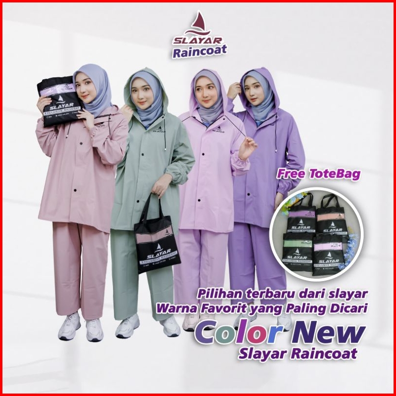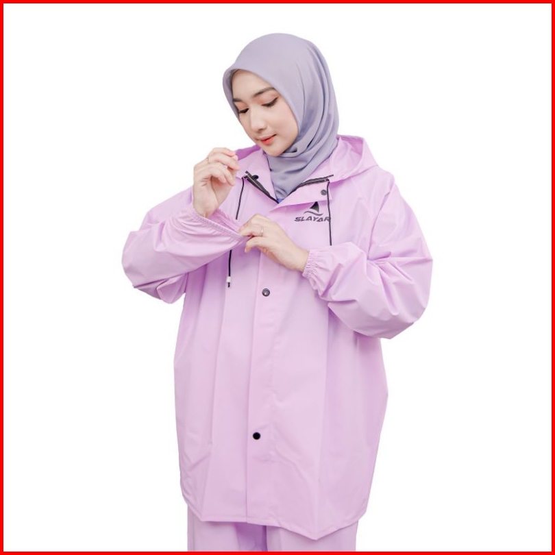 Jas Hujan Wanita Model Setelan Celana Bahan Pvc