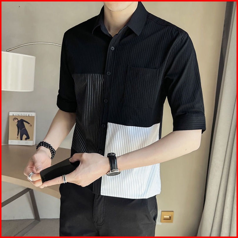 Kemeja Pria Lengan Pendek Salur Distro Kotak-kotak Premium Terbaru Casual Kerja Fashion Kaos Polos Polo Shirt Pria Atasa