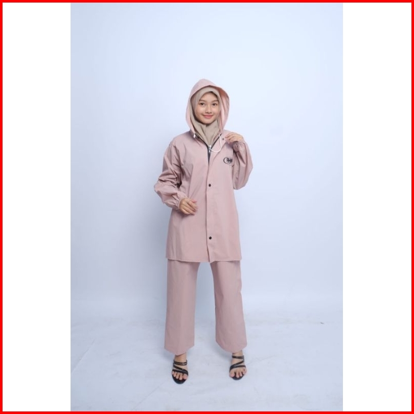 Mantel Hujan Fhr Stelan Baju Celana Bahan Pvc Anti Rembes Pria Wanita Resleting Premium